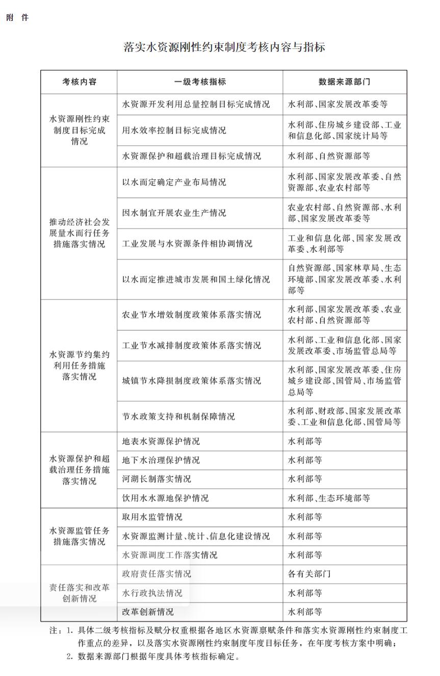 国务院办公厅印发《落实水资源刚性约束制度考核办法》